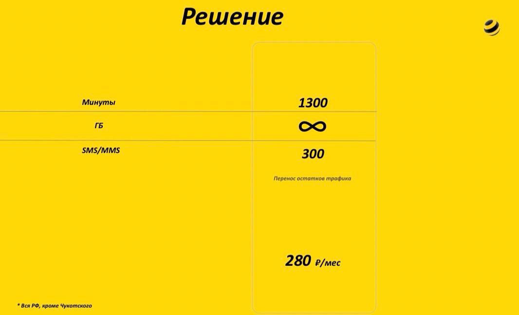 Билайн "Решение-2". На Ваш номер Билайн или новый номер.