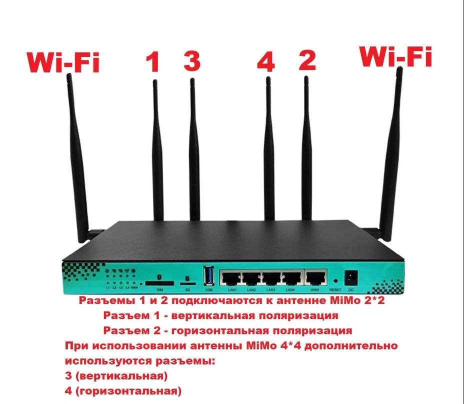 - Антенные разъемы: 4 x SMA для 4G/5G антенн**.
